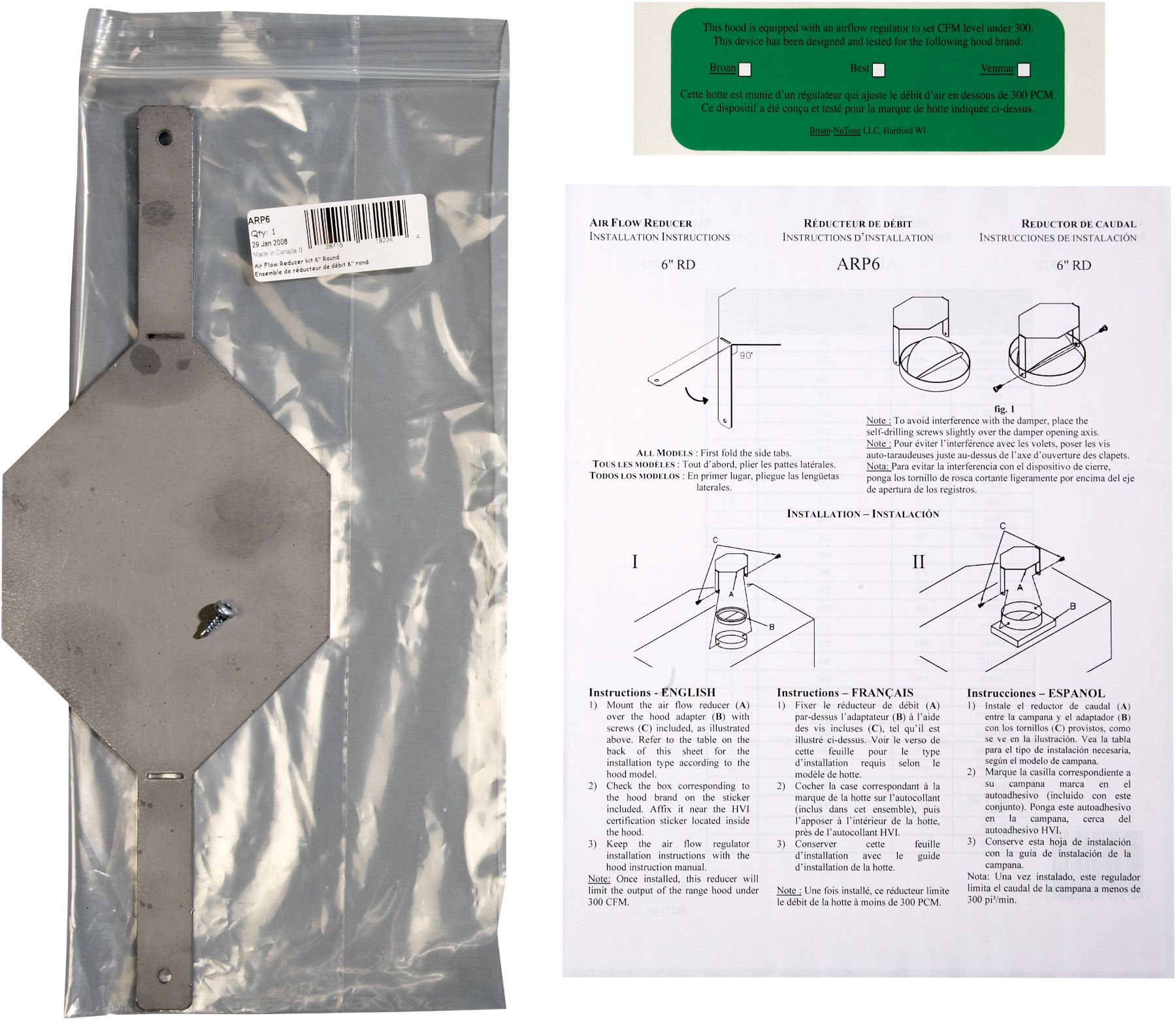 These airflow regulators limit the CFM output of range hoods to comply with most local codes -- and without the need for make-up air. As a result, these kits give access to a broader offering of styles and designs within the standard Broan® line of range hoods without the need for costly add-on systems in the home.Read More