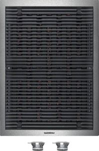 Half size cast-iron griddle included for simultaneous searign and grilling on two separate surfaces
