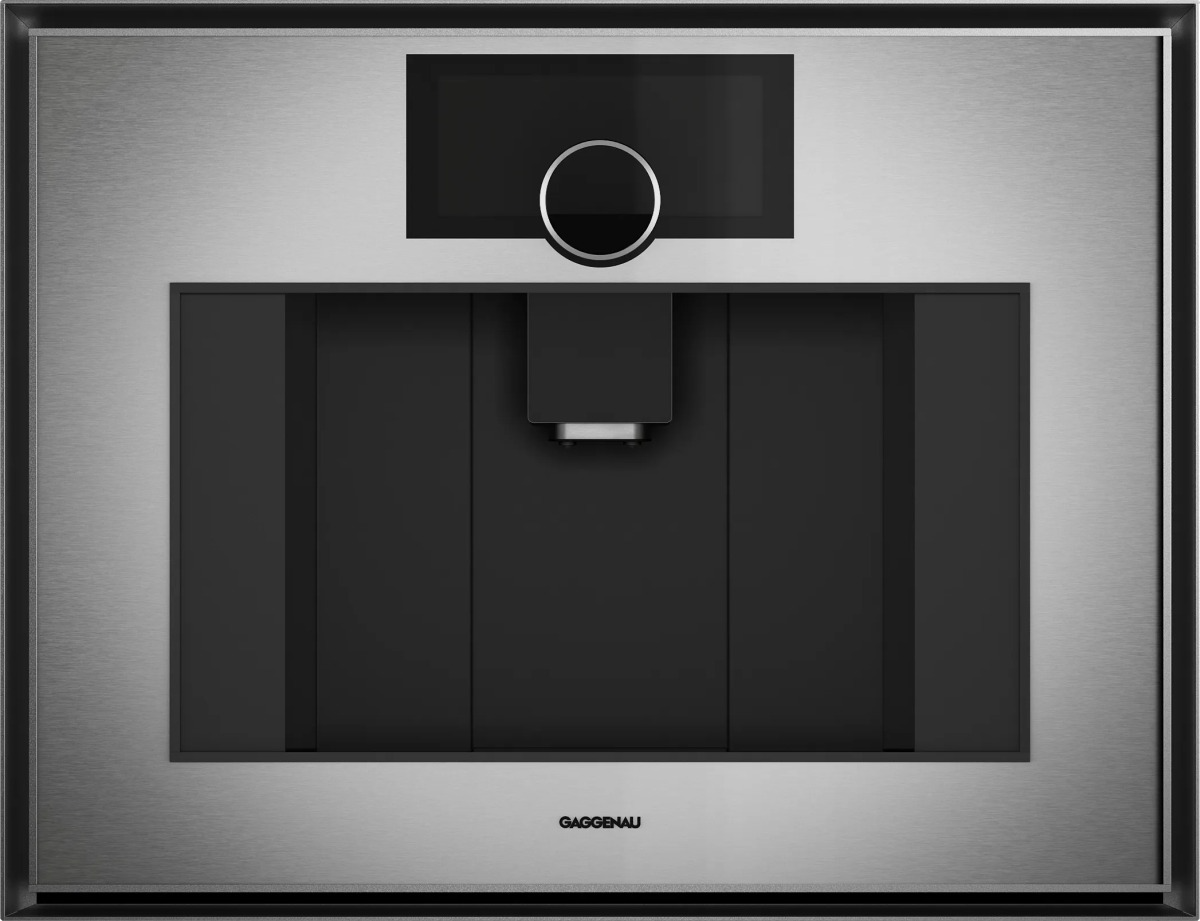 Gaggenau Expressive series fully automatic coffee machine stainless steel behind smoked glass, removable water tank.Read More